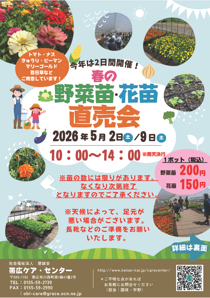 花・野菜苗の直売会のお知らせです。