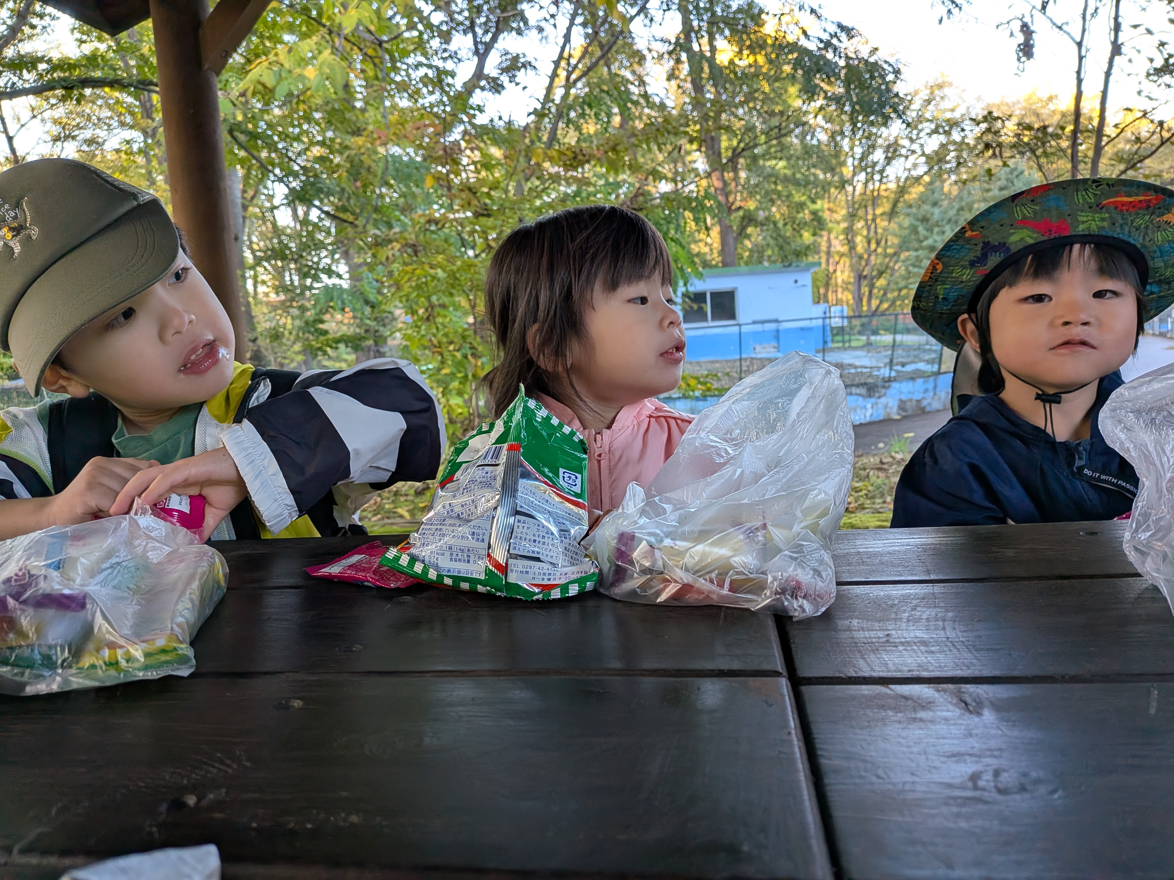 たくさんの動物さんを見た後はおやつタイム!心優しい子どもたち。先生にも自分たちのおやつをおすそ分けしてくれました☆彡